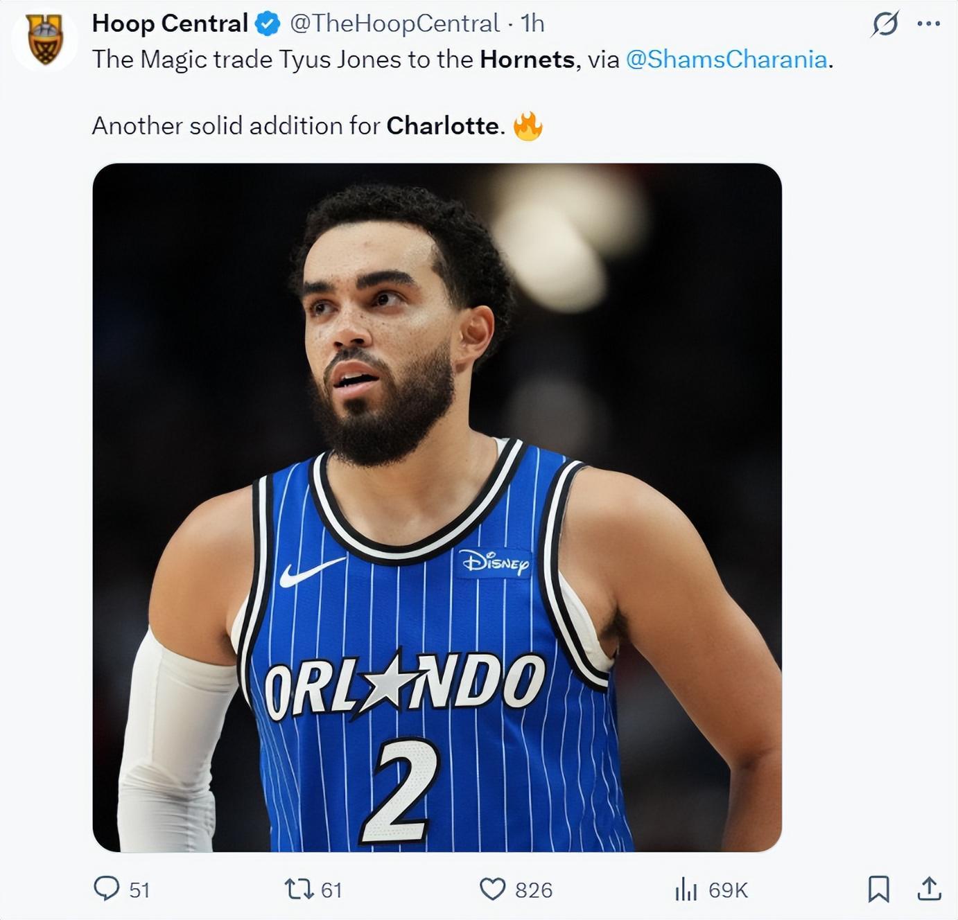 紧接着黄蜂与魔术达成交易,黄蜂接手了泰厄斯-琼斯700万的合同,魔术则送出了两个次轮签,此举魔术队减免了奢侈税。
