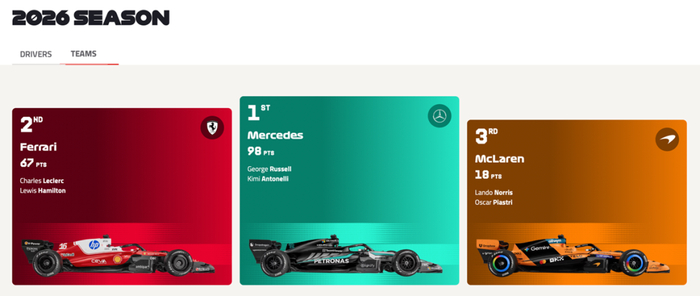 梅赛德斯车队在动力单元方面的优势开始显现。据围场传闻,梅赛德斯利用16:1压缩比规则,通过材料热膨胀特性使引擎在实际工作温度下达到18:1压缩比,获得约15马力优势(单圈快0.3秒)。尽管法拉利、本田、奥迪联名施压要求封堵“漏洞”,但FIA静态检测显示其合规。这一技术红利直接转化为赛场上的压倒性优势:澳大利亚站正赛,梅赛德斯车队拉塞尔夺冠、安东内利亚军;来到中国站,两位车手延续强势表现,同样包揽前二,用两场包揽冠亚军的战绩,印证了技术优势的实战价值。